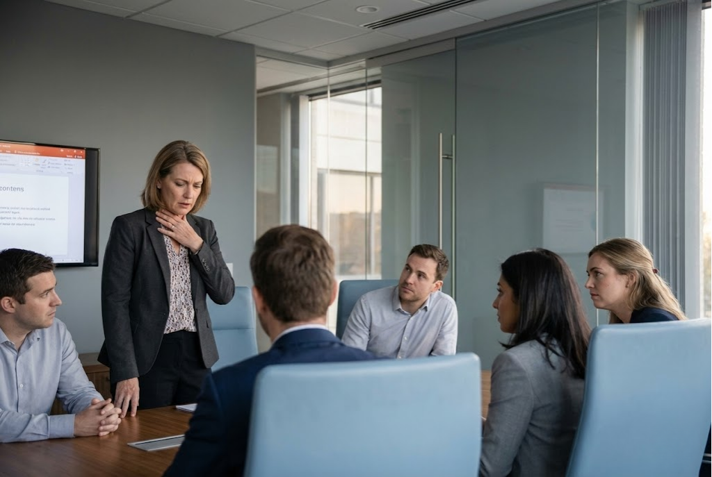 I'd be presenting in a meeting. Clear throat. Lose my train of thought. Clear throat again.