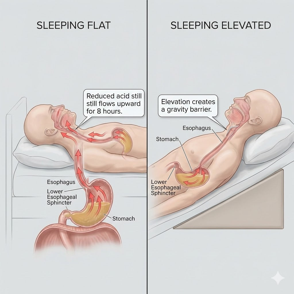 The result? Your medication can finally do its job—reducing acid production—while elevation prevents that reduced acid from ever reaching your unprotected throat tissue. Chemistry + physics working together.